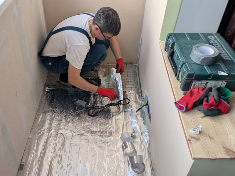 Именно поэтому нашим инженером был рекомендован ультратонкий фольгированный тёплый пол Grandex MF — один из лучших вариантов для балконов, лоджий, небольших помещений и зон с ограничением по высоте стяжки.