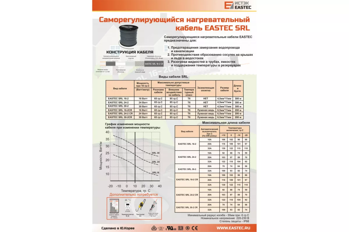 Греющий кабель EASTEC SRL 24-2: