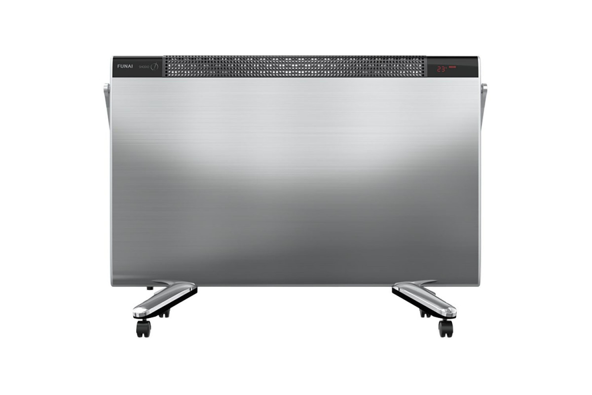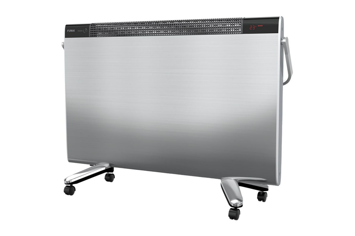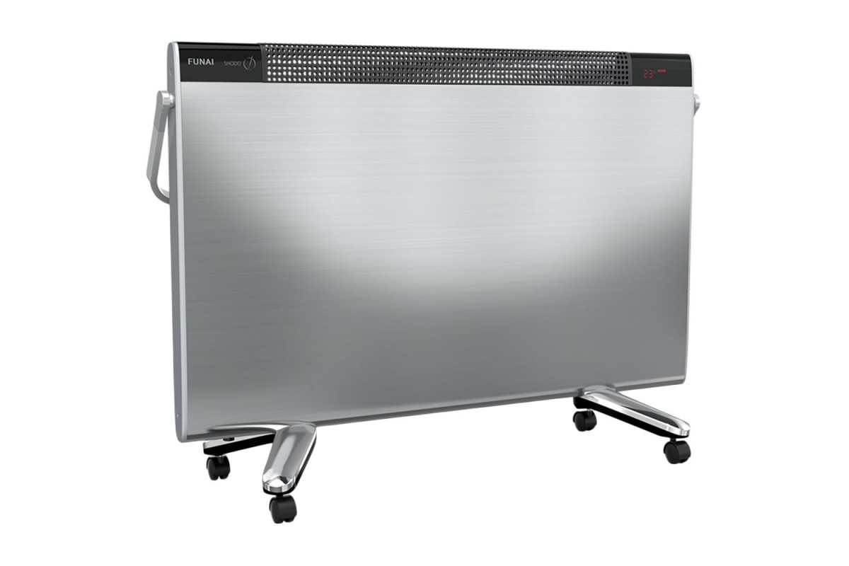 Электрический конвектор Funai (Фунаи) ECH-SHE2101ST отличается великолепным дизайном, выполнен в серебристом цвете и оснащен сенсорной панелью управления с цифровым дисплеем, отображающим рабочую температуру. Кроме того, для регулирования настроек в комплект включен дистанционный пульт управления.