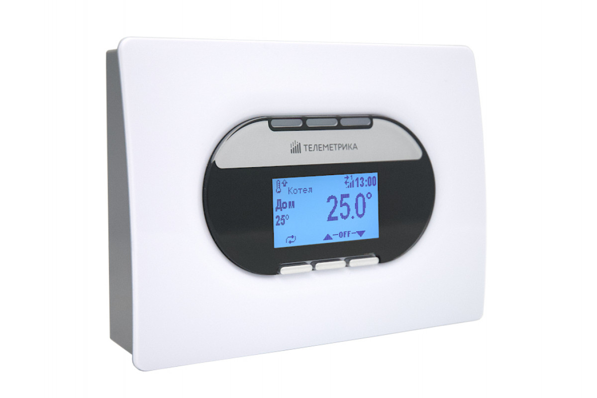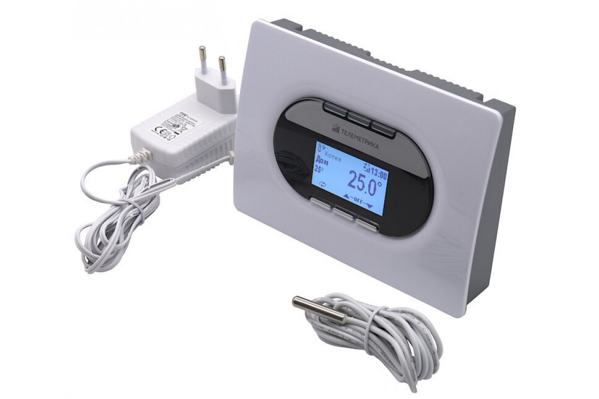 Наличие датчика температуры в приборе, а также возможность использования дополнительных датчиков позволяет поддерживать температурный режим в помещении за счет выдачи задания отопительной системе. Термостат позволяет управлять режимами работы котла дистанционно, при этом оповещения об изменениях параметров приходят пользователю на телефон.