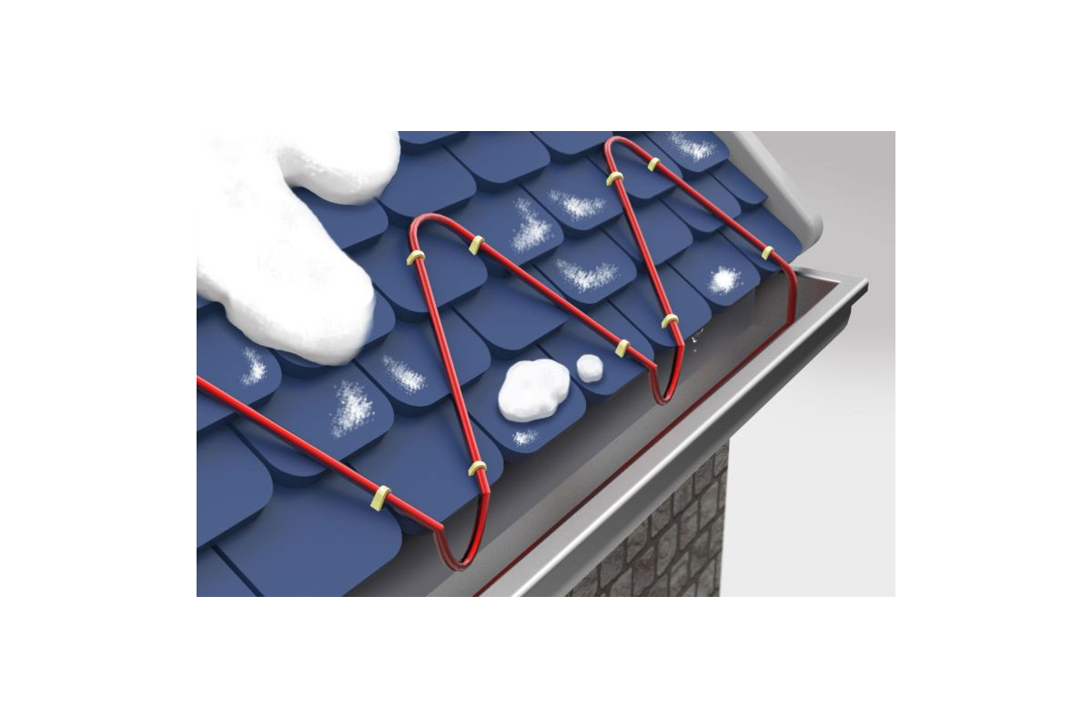 Греющий кабель прокладывается в местах где необходима защита от обледенения, скопления снега и льда: на карнизах, в водосборных воронках, стояках, желобах.