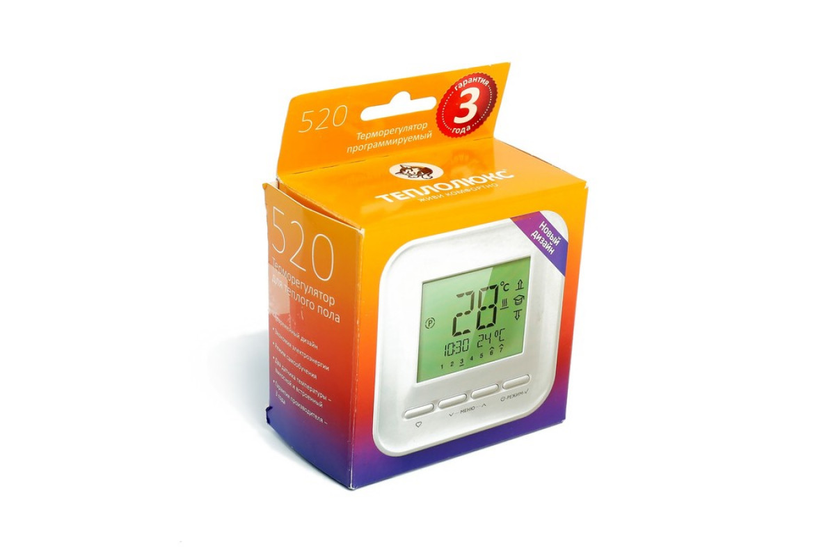 Терморегулятор запоминает данные установки для каждого дня недели отдельно и включает подогрев в нужное время.Дополнительно в модели ТЕПЛОЛЮКС 520 реализованы режим постоянного поддержания заданной температуры и режим «антизамерзания». В случае длительного отсутствия людей дома использование режима "антизамерзания" позволит обеспечить в помещении минимальную положительную температуру.