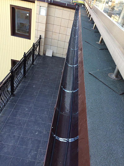 Требовалось спроектировать и провести монтаж системы антиобледенения кровли и водосточной системы.