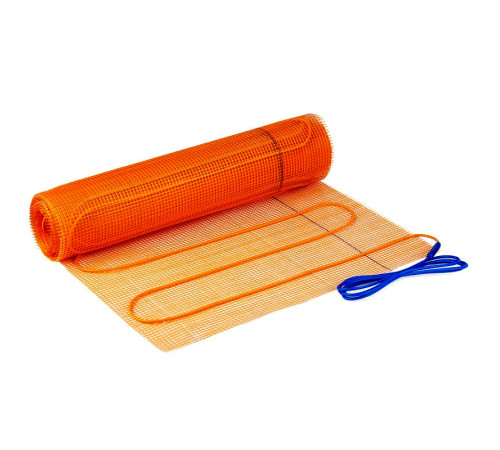 Мат оснащён двухжильным экранированным кабелем, закреплённым на стекловолоконной сетке с постоянным шагом укладки 10 см, что обеспечивает равномерный нагрев и упрощает установку. Благодаря тонкой конструкции, мат можно укладывать непосредственно в плиточный клей, без необходимости дополнительной стяжки.