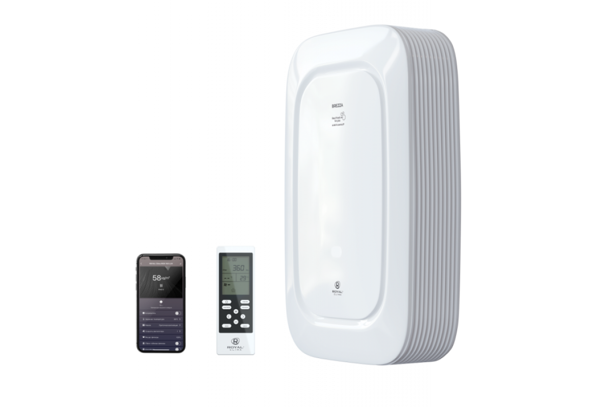 Приточно-очистительные комплексы BREZZA RCB производства итальянской компании ROYAL Clima для насыщения помещений очищенным воздухом через существующие фильтры. Для обеспечения должной эффективности подачи воздуха по всему помещению используется вентилятор с небольшим шумом и особая утончённая конструкция корпуса. Управление может осуществляться с пульта ДУ, на котором удобно настраивать все режимы работы, а также с мобильного устройства благодаря встроенному модулю WI-FI.