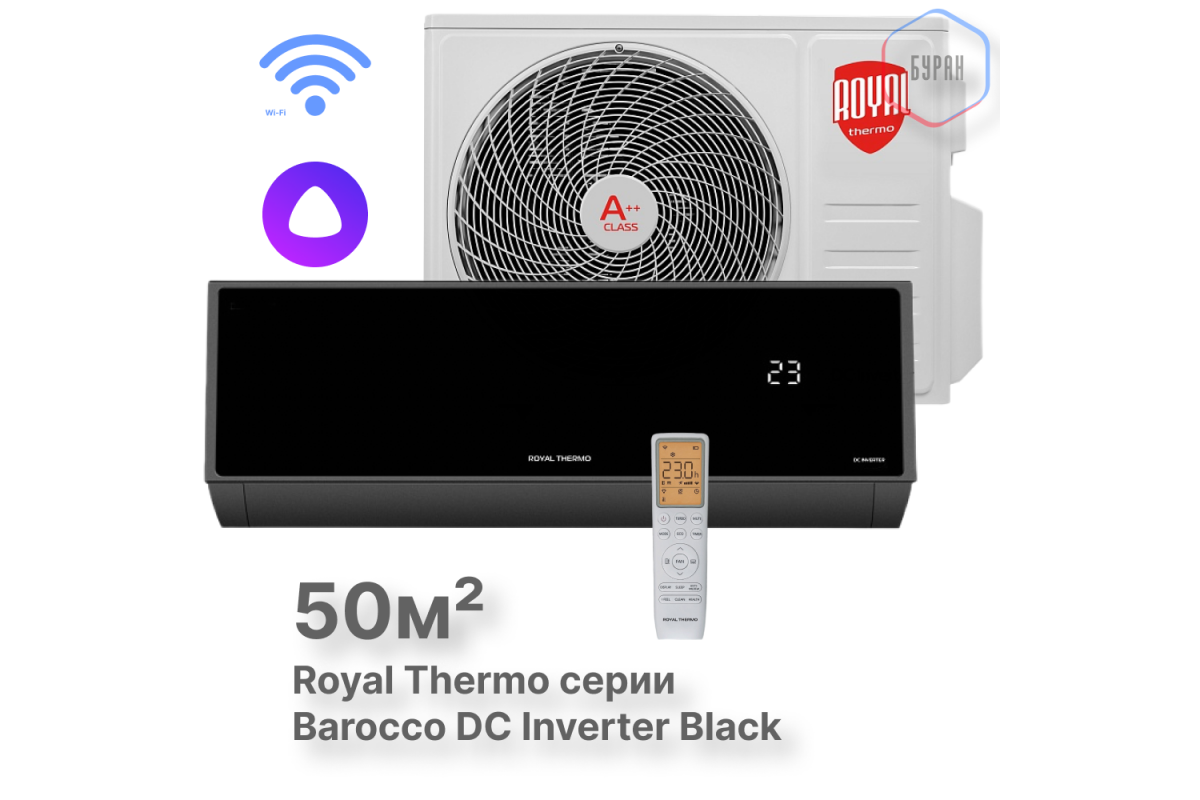 Сплит-система инверторного типа Royal Thermo Barocco DC RTBI-18HN8_V2/black комплект — стиль и комфорт в одном устройстве 🖤❄️