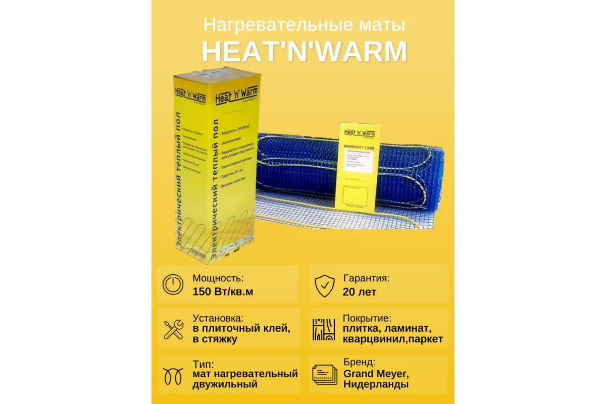 Теплый пол нагревательный мат Heat'n'Warm EcoNG150-080 (8,0 кв. м) — это надежное и эффективное решение для создания комфортного теплого пола в вашем доме. Простота монтажа, равномерный обогрев и долговечность делают его отличным выбором для обогрева помещений с плиточным покрытием.