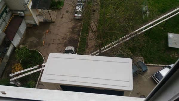 Магистрали к внешним блокам, смонтированных на стенке балкона, протянуты через балкон. На фото это хорошо видно.