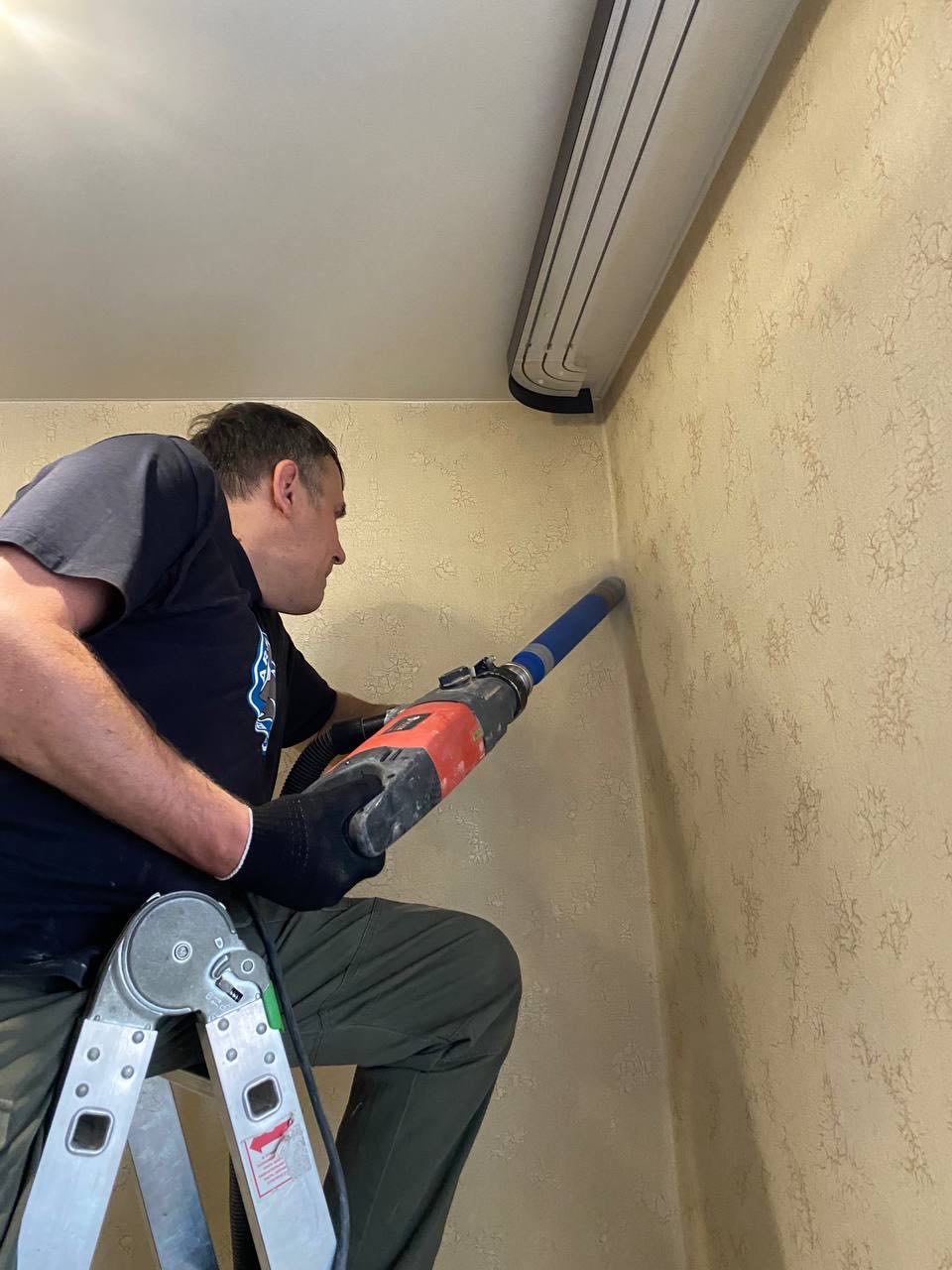 События происходят не летом и не в жару — кондиционер установлен заранее и выгодно. Установка кондиционера Kentatsu Kanami для Елены Константиновны в Новосибирске