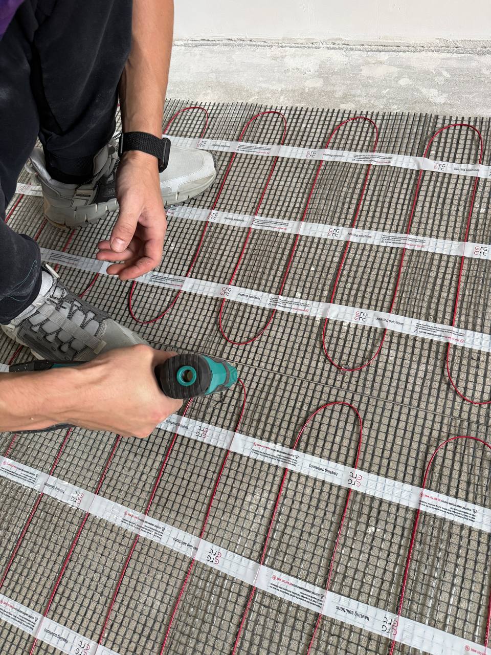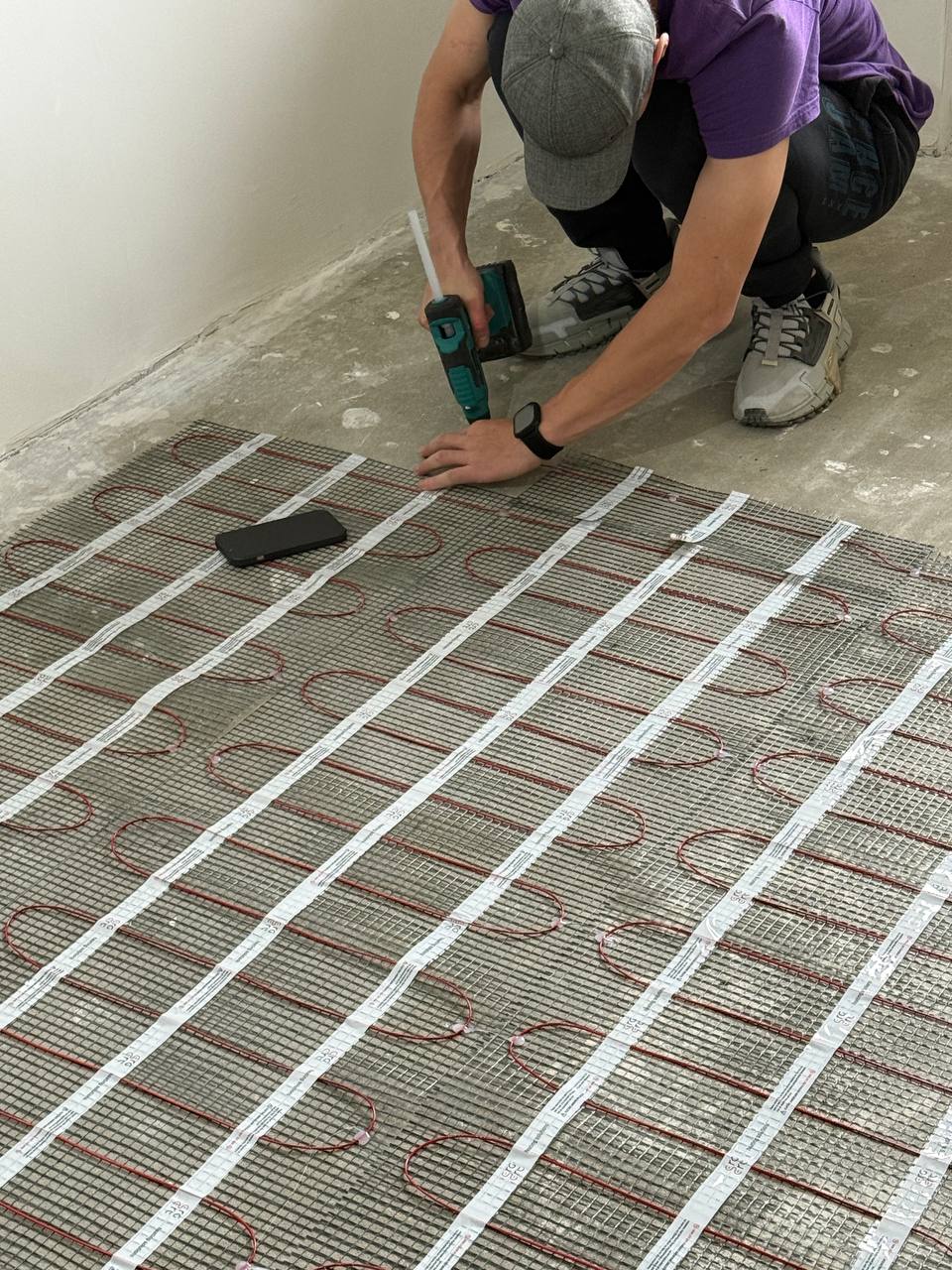 Укладку нагревательного мата Ergert EXTRA-150 с фиксацией на плиточный клей.