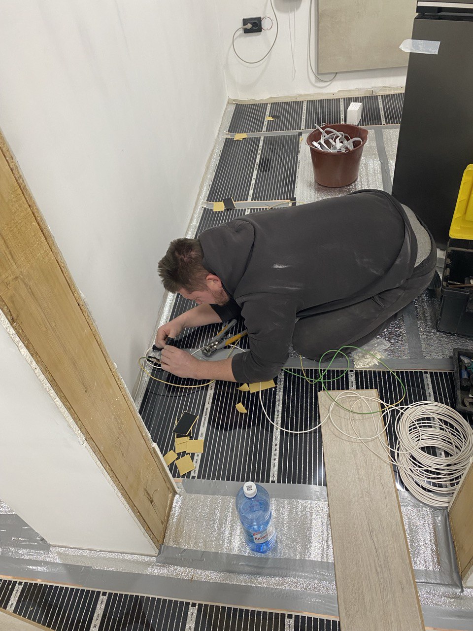 На первом этапе специалисты Дмитрий и Сергей выехали на объект для проведения точных замеров и технического анализа. В ходе обследования были учтены особенности планировки дома, толщина стяжки, качество теплоизоляции и характеристики ламината как финишного напольного покрытия. На основе полученных данных инженеры подготовили индивидуальный проект системы тёплого пола и рассчитали оптимальную мощность оборудования.