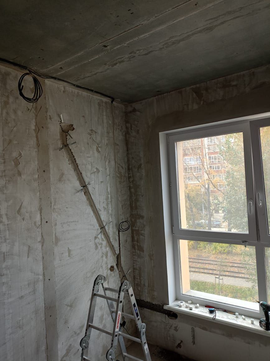 В случае нашего клиента Владимира, который приобрел квартиру на проспекте Комсомольском в Томске, квартира с черновой отделкой стала идеальной площадкой для выполнения монтажа в два этапа. Черновая отделка позволяет спрятать трассу в стенах, что улучшает эстетический вид помещения.