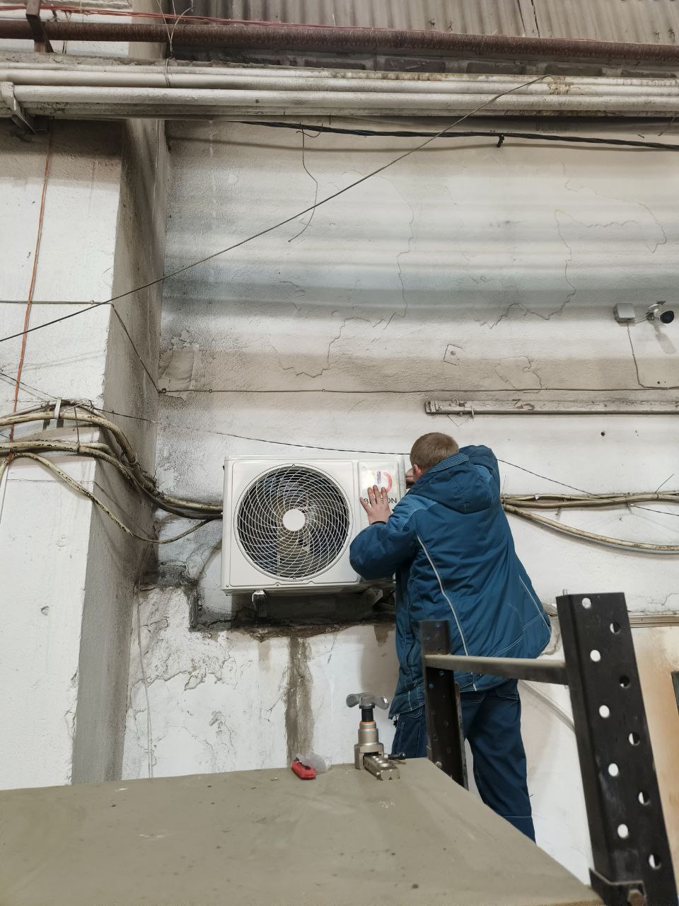 Внешний блок установлен буквально за стеной, в пределах складского помещения компании, что обеспечивает минимальные теплопотери и быстрый отклик.